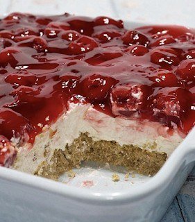 - Carefully spoon the cherry pie filling on top.