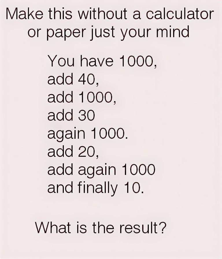 Big numbers: 1000 + 1000 + 1000 + 1000 = 4000