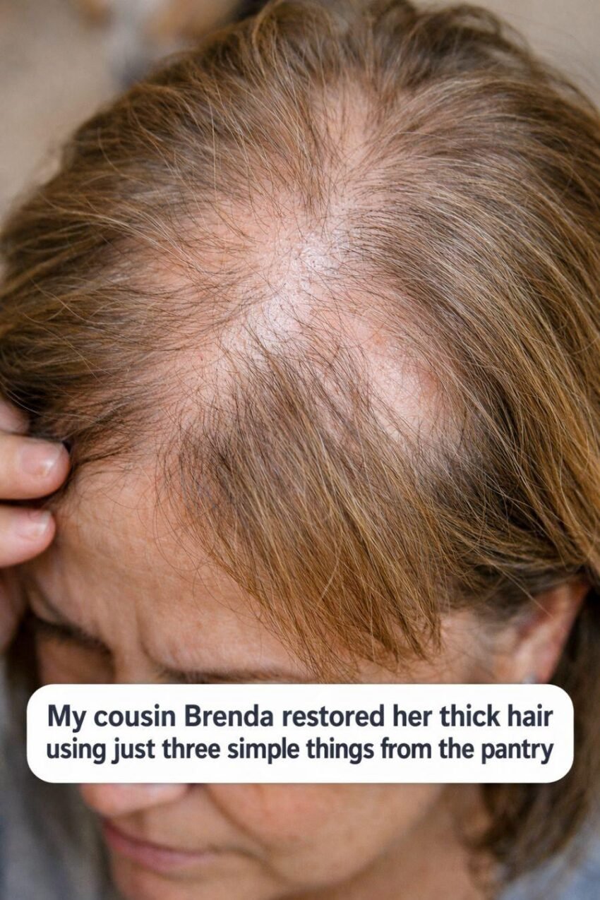 My cousin Brenda restored her thick hair using just three simple things from the pantry.