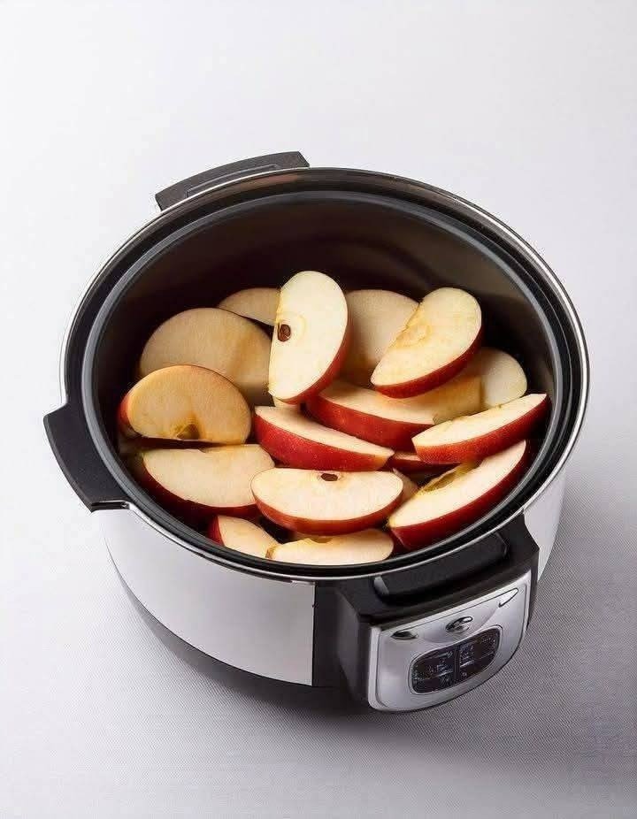 Put raw apple slices in a slow cooker with these 3 ingredients. Comfort food at its best..